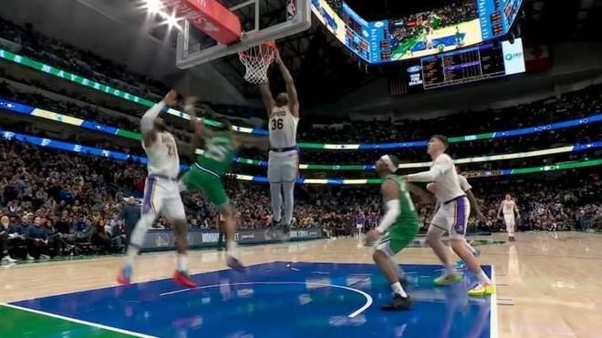 第二节比赛,虽然湖人这边有着中锋艾顿贡献的“名场面”,在篮下连续抢到4个前场篮板,却离谱地连续5次放篮不中,但是独行侠整体进攻受阻,湖人趁机将分差拉开,半场65比52领先13分。