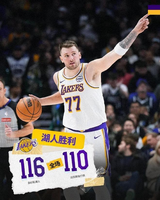 湖人客场完成14分逆转击败独行侠!北京时间1月25日,NBA常规赛上演一场跌宕起伏的焦点战,洛杉矶湖人客场挑战达拉斯独行侠。湖人首节顺风顺水,次节一度领先13分,却在第三节崩盘被独行侠反超,紫金军团在末节最多落后14分的绝境下,湖人最后6分钟打出26比8的超级攻击波,最终以116比110完成逆转,从客场带走胜利,终结独行侠四连胜。