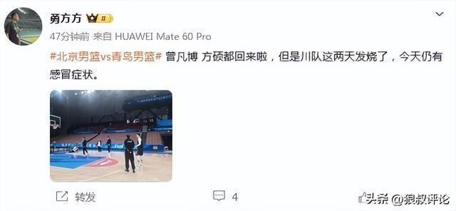根据媒体人勇方方报道,曾凡博、方硕都回来参加了踩场训练,但是翟晓川这两天发烧了,今天仍有感冒症状。